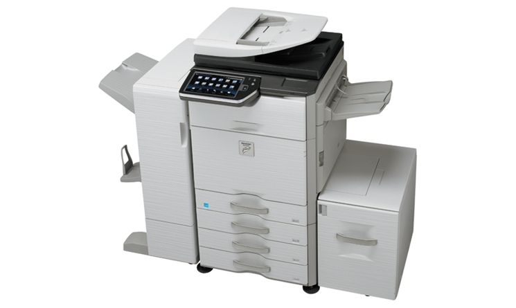 | Print Features | Auto configuration, continuous printing, electronic sorting, offset stacking, N-up printing, duplex printing, transparency inserts, margin shift, image rotation, different cover page, poster print, job bypass print, job retention, confidential print, proof print, user authentication, image stamp and watermarks. Additional features: Multiple pamphlet, network tandem print, carbon copy print mode, different cover page/last page/other page, form overlay, tab paper settings, tab printing, chapter inserts, page Interleave and bar code font printing (requires MX-PF10 bar code font kit) |